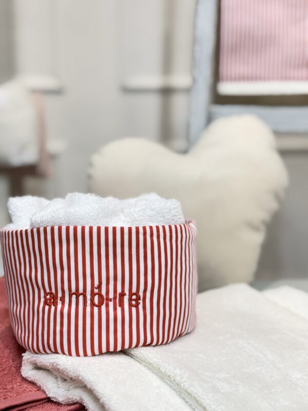 Coppia di asciugamani con balza a righe