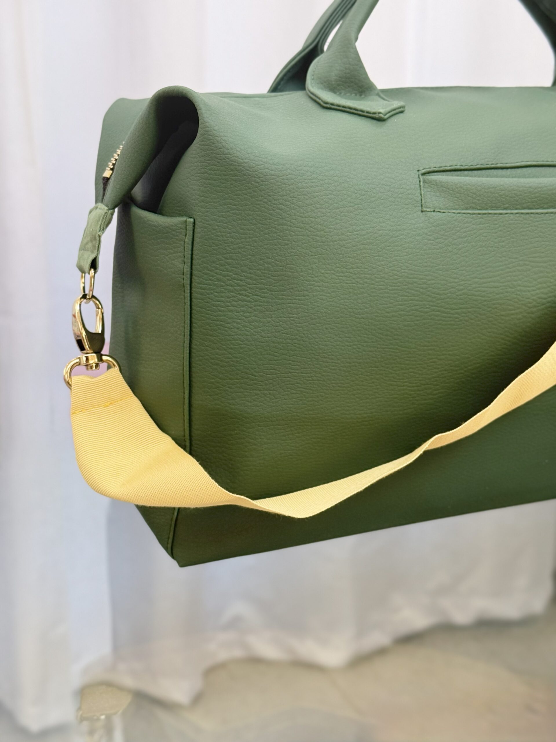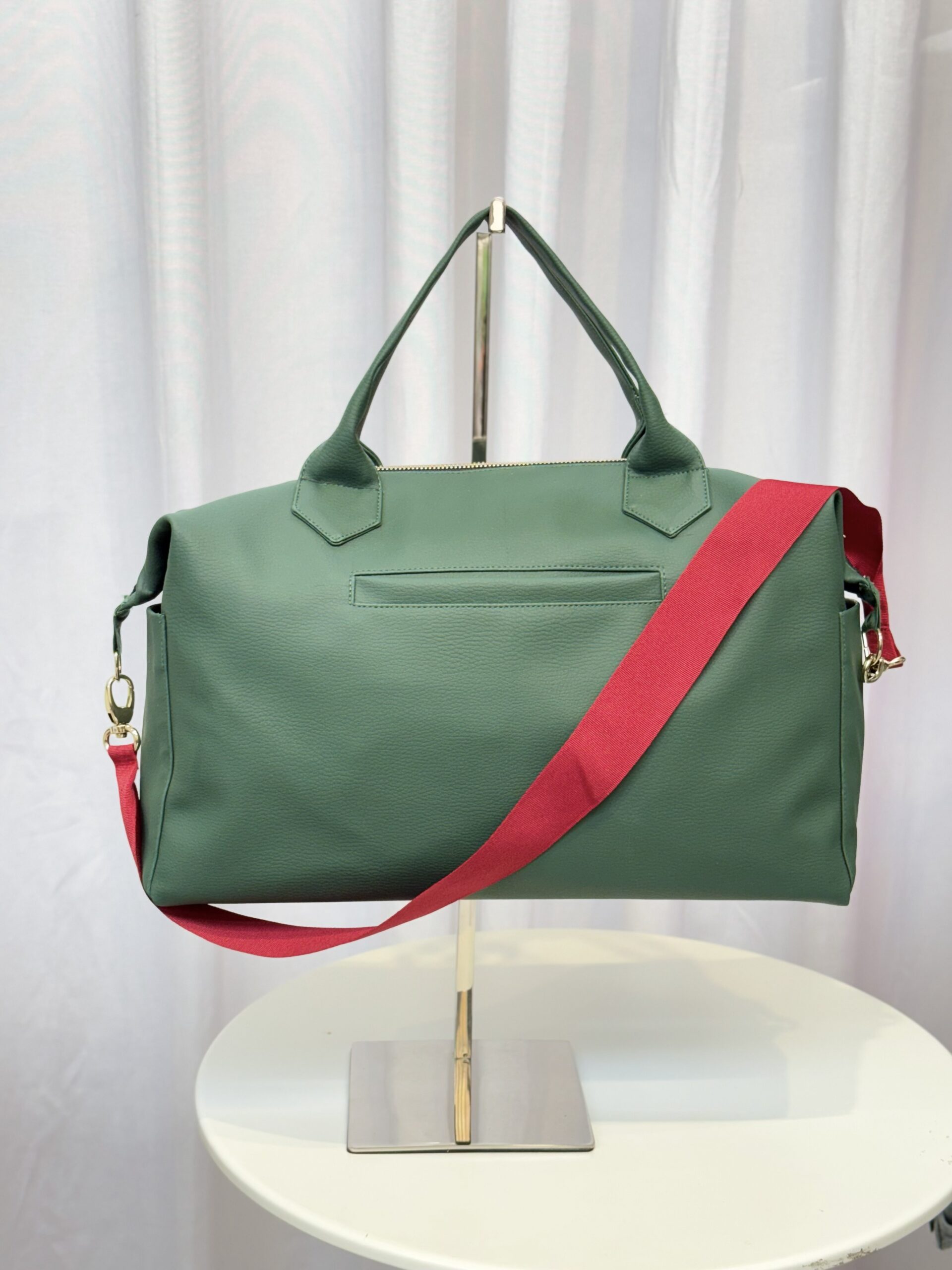 Borsa in similpelle con doppia tasca esterna laterale e tasca centrale a filetto