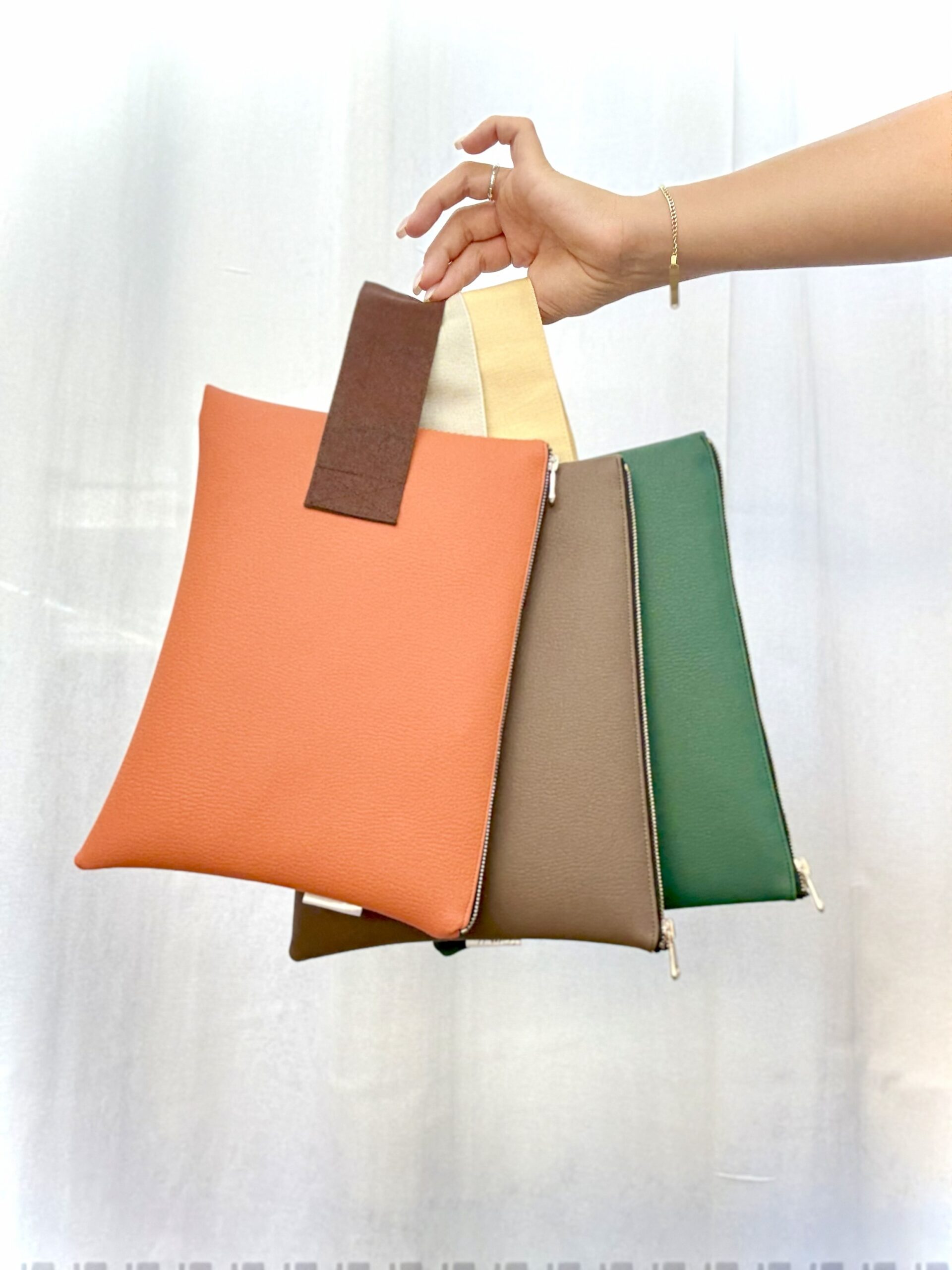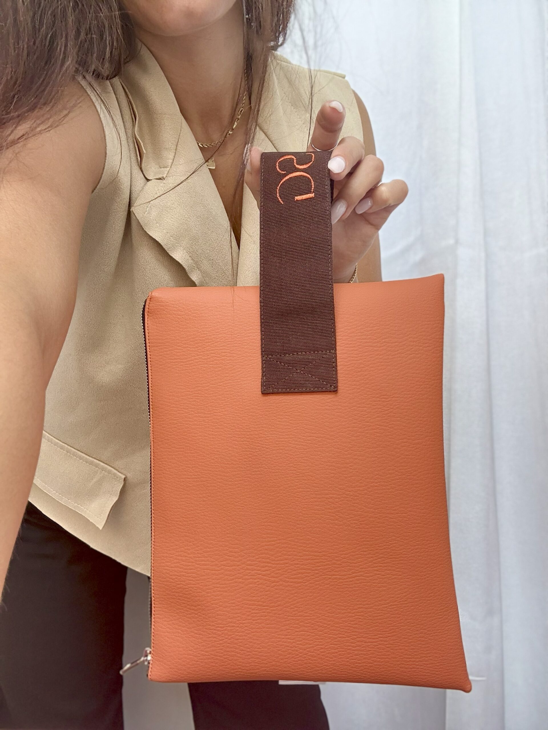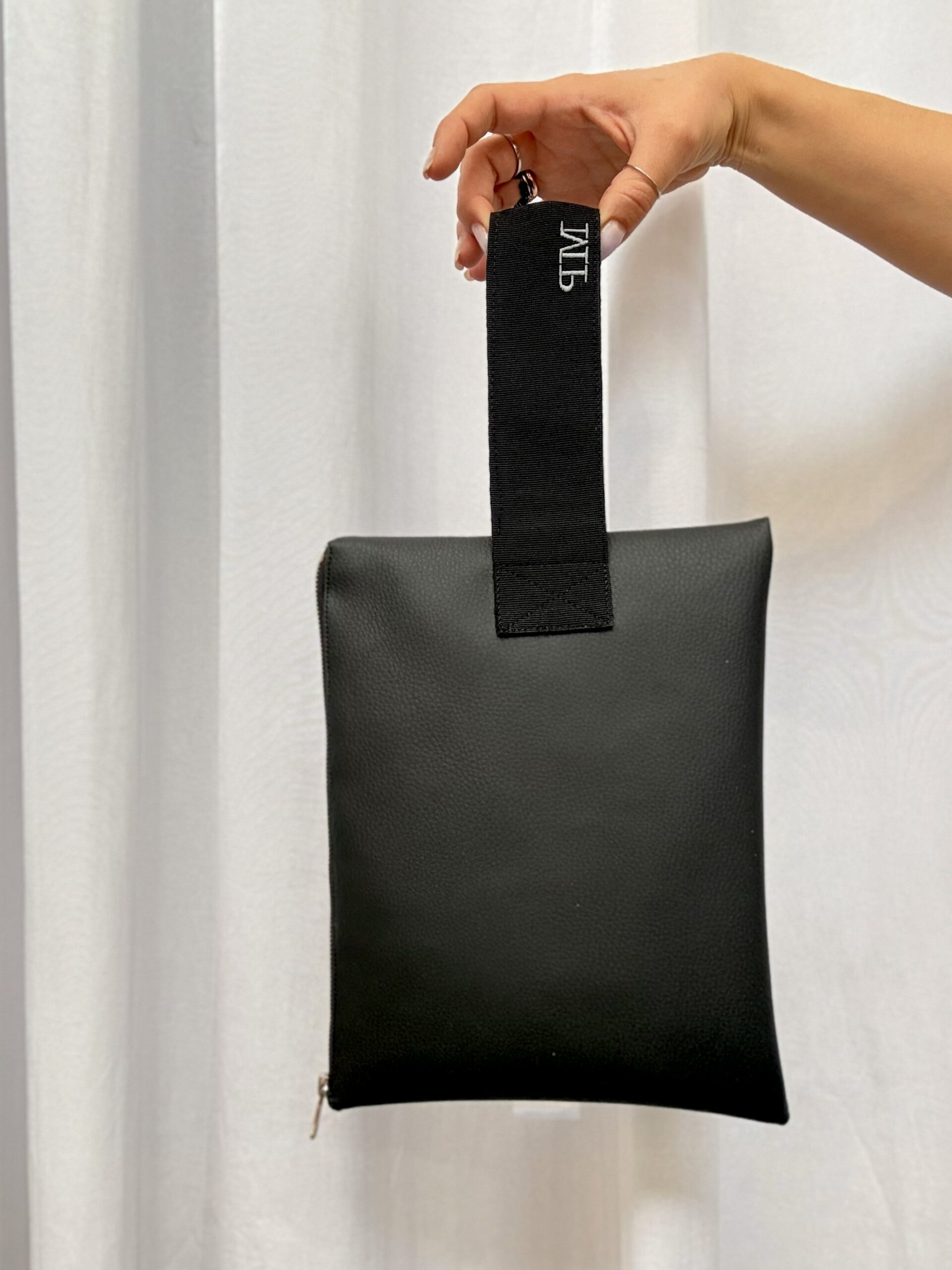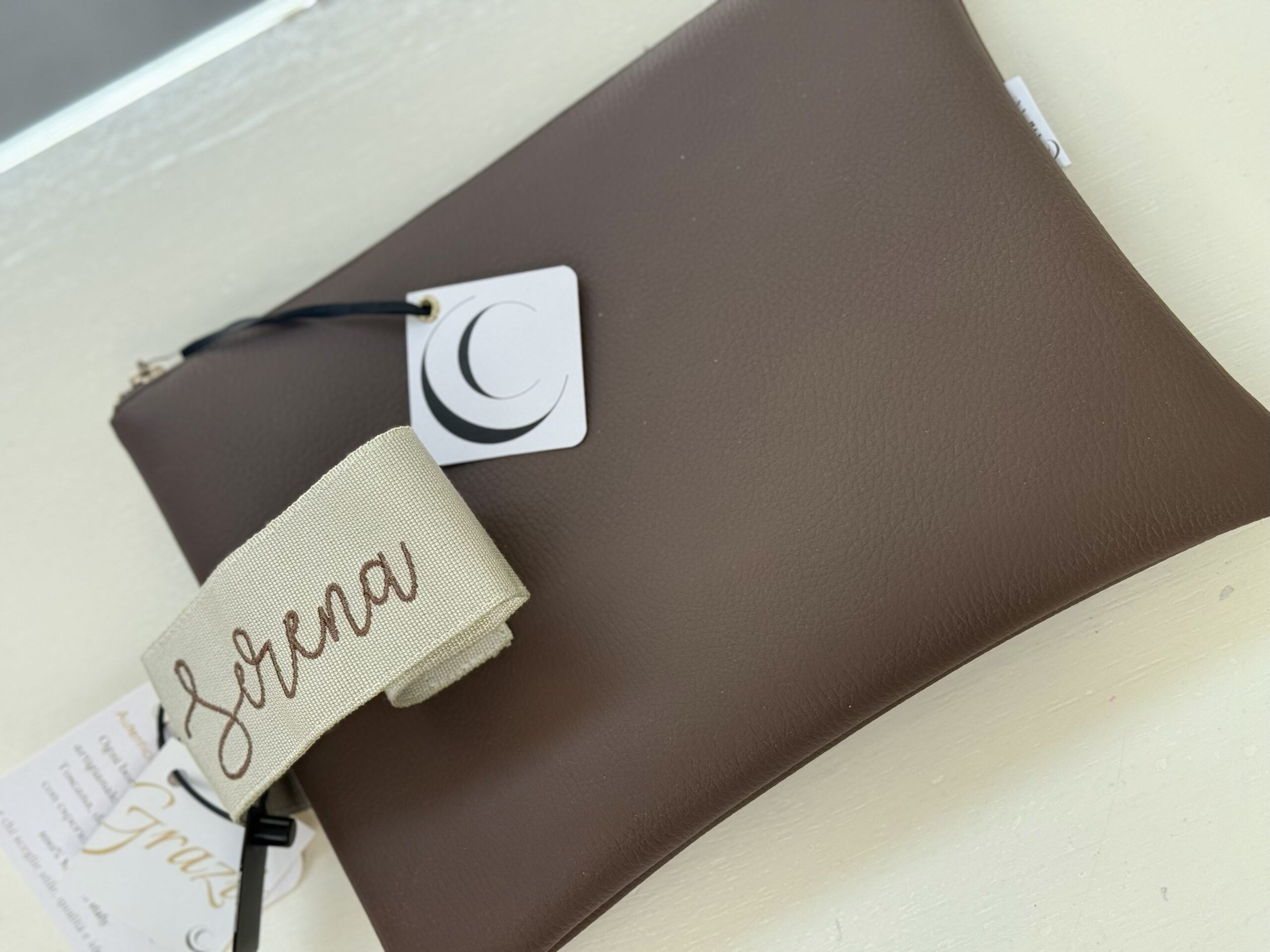Busta in similpelle con polsino di nastro personalizzabile con ricamo