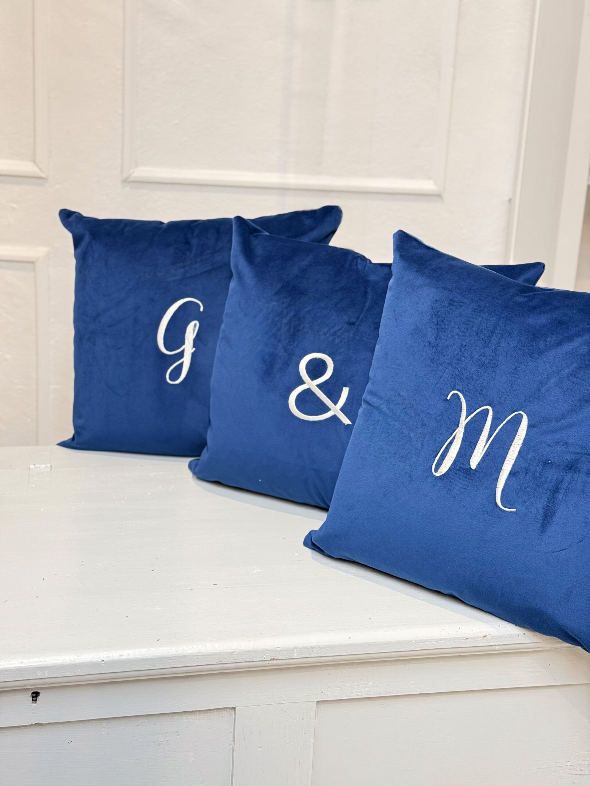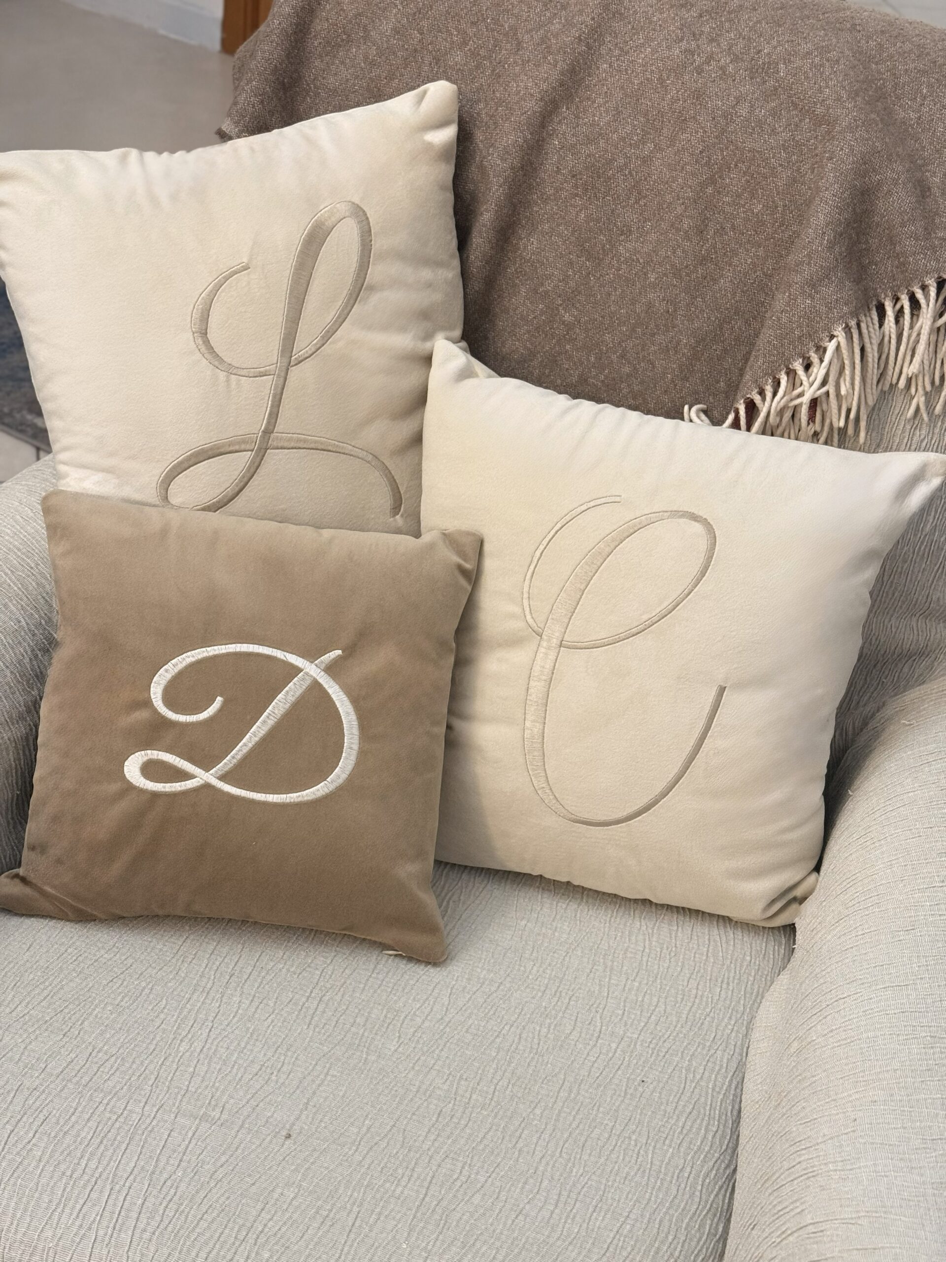 Cuscino in velluto sfoderabile e ricamabile con iniziali in corsivo