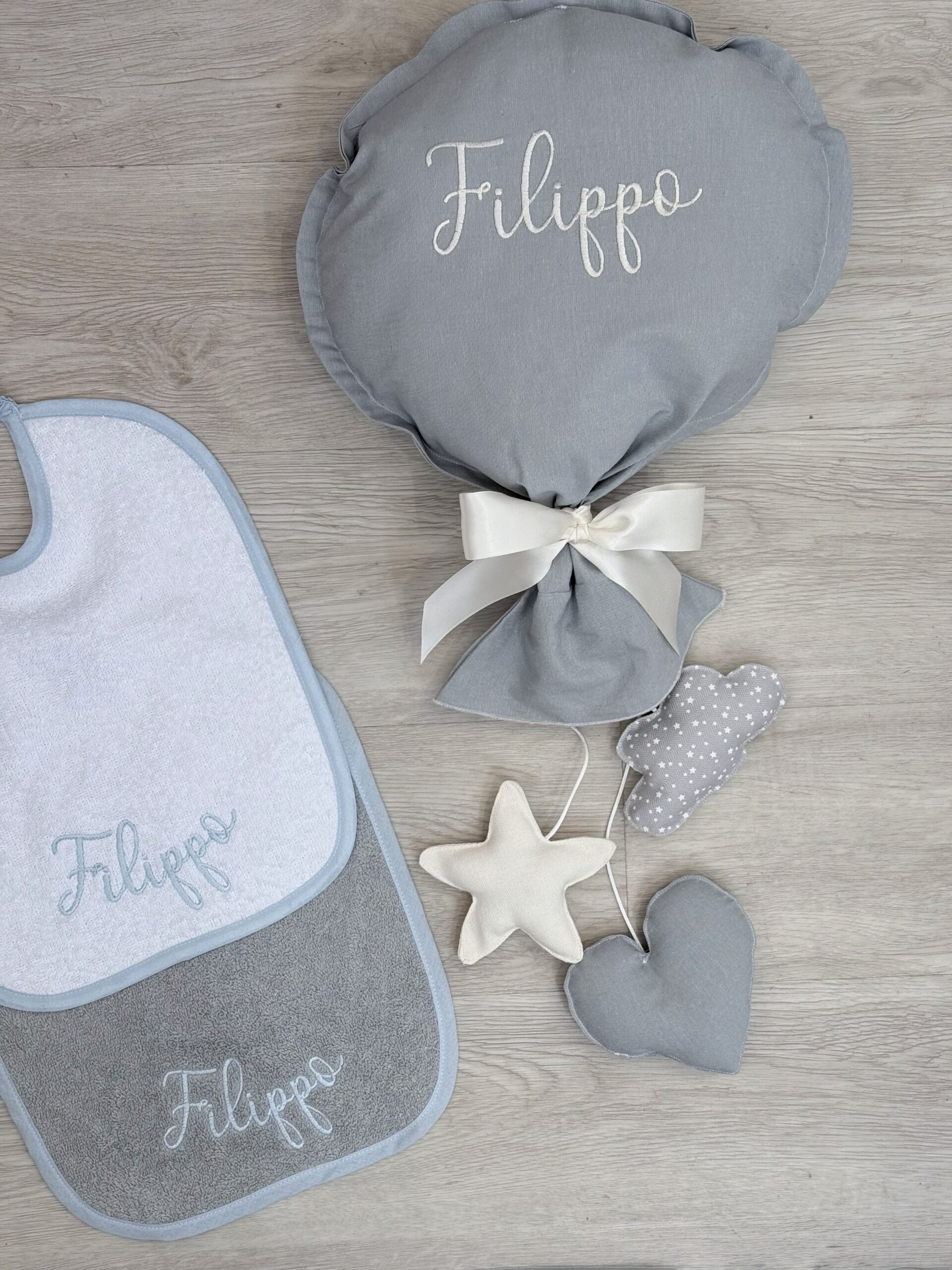 Palloncino da appendere personalizzabile con ricamo in corsivo tono su tono